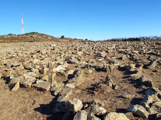 están delimitadas por unas piedras de pequeño tamaño, aunque en la posición de la cabeza suele haber una laja plana más grande, pero en este cementerio no suelen ser así.