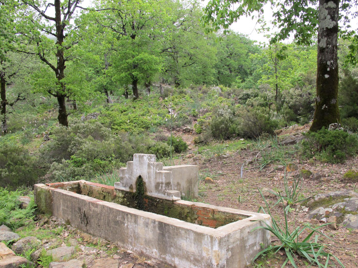 Fuente con pilón para abrevar al ganado, debajo del lago.